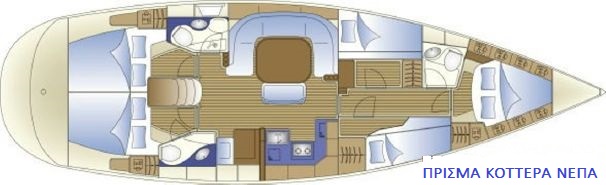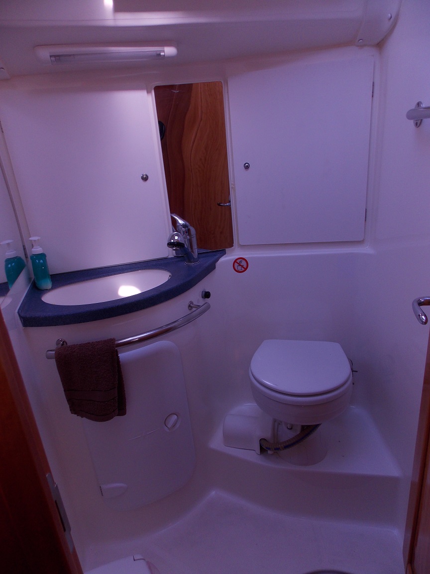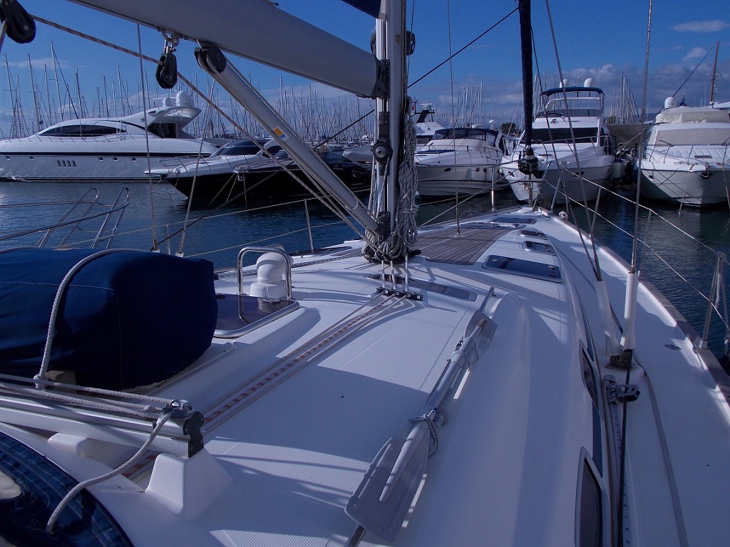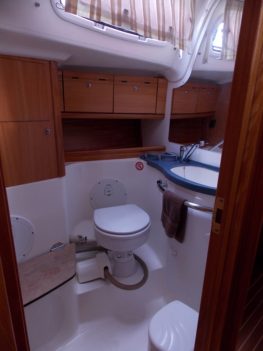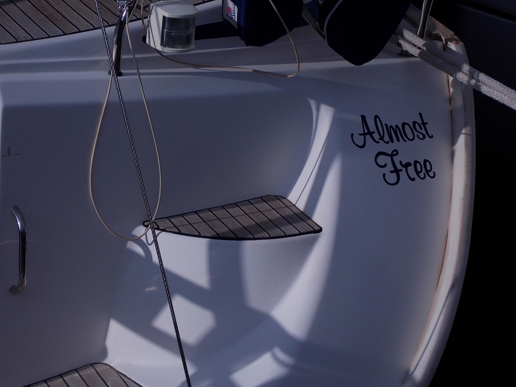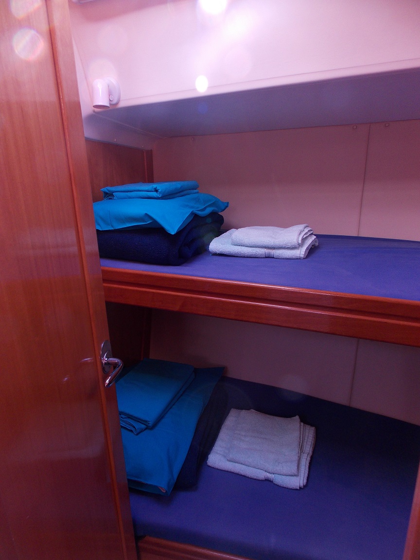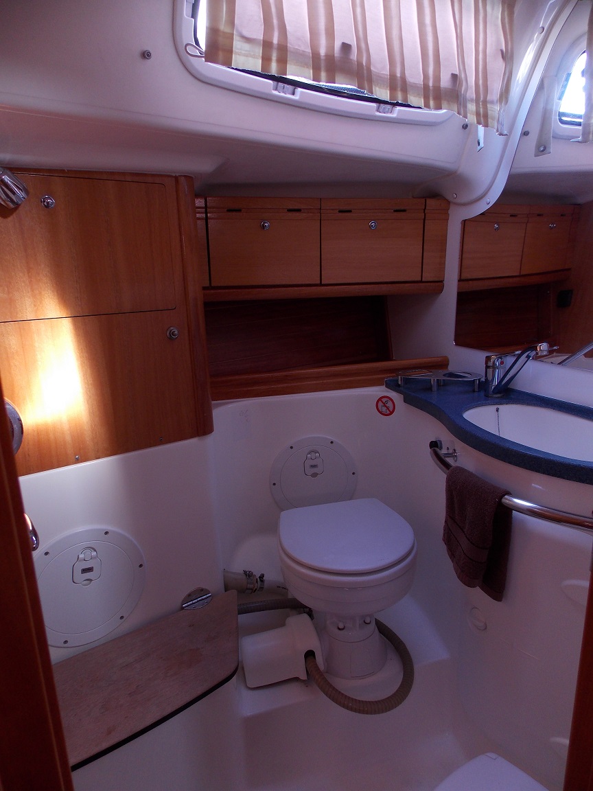 The Bavaria 50 Cruiser Almost Free is a large cruising yacht providing spacious and comfortable accommodation for a few small families, or a group of ten adults. The forward side cabins provide bunk beds which are popular with children. Almost Free can welcome ten people in five cabins. There is a cabin forward of the galley with two bunk beds, a shared head and shower opposite to starboard. A large cabin, that splits the V-berth in two, and a V-berth, are just aft of the deep chain locker in the bow. Below the decks, Almost Free is really spacious, with the salon laid out to entertain all passengers. The amply-sized table with U-shaped seating to starboard and an amidships bench could easily seat ten. The interior is well lit and airy, thanks to seventeen opening hatches and twelve ports, and comes with wood and sole options that range from light-colored ones to dark chestnut. There is a chart table in front of the starboard heads with control panel, chart plotter, GPS, VHF radio and CD/radio player. The cockpit table has comfortable seats and is covered by a bimini tent. There are also external loudspeakers in the cockpit connected to the CD/radio. Almost Free can be managed by a crew of two, although at 50 ft a larger crew always makes mooring and other tasks simpler. She is equipped with twin-wheel steering, rolling genoa and in-mast furling mainsail plus a bow thruster, making maneuvering easier. She also includes a full teak deck, chart plotter and an inflatable dinghy with outboard engine. You can book Almost Free bareboat or with an experienced skipper. More: Hands Generator 3.kva, furling mainsail, laptop, dvd, wireless internet access on board, 3 electric toilets, inverter 12/220 (600 w, for laptop,cellphones...).